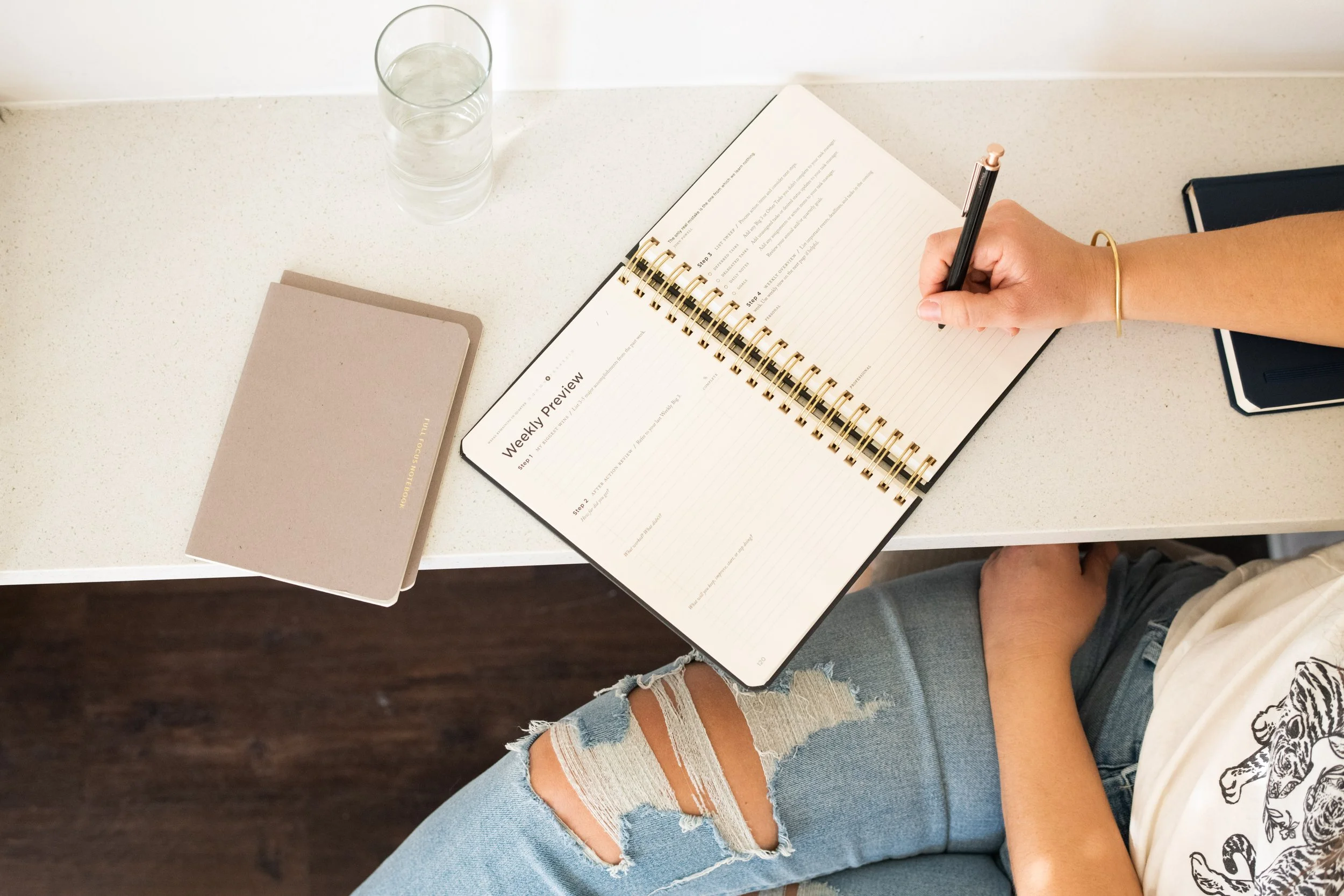 Each week, we carve out time to review the past seven days, learn and refocus on the goals, then create a plan for the next seven days. This guided process will help you